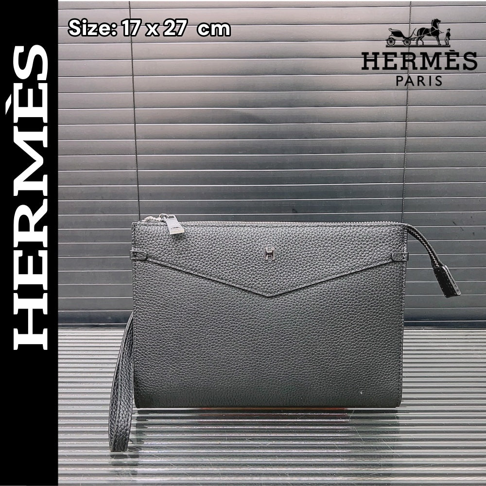 【エルメス】シンプルでエレガント ブラックレザークラッチ 大人の男性に最適